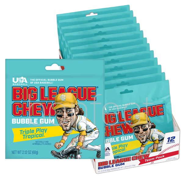 Big League Chew Triple Play Tropical Chewing Gum Pouch 60g * 12 Pack