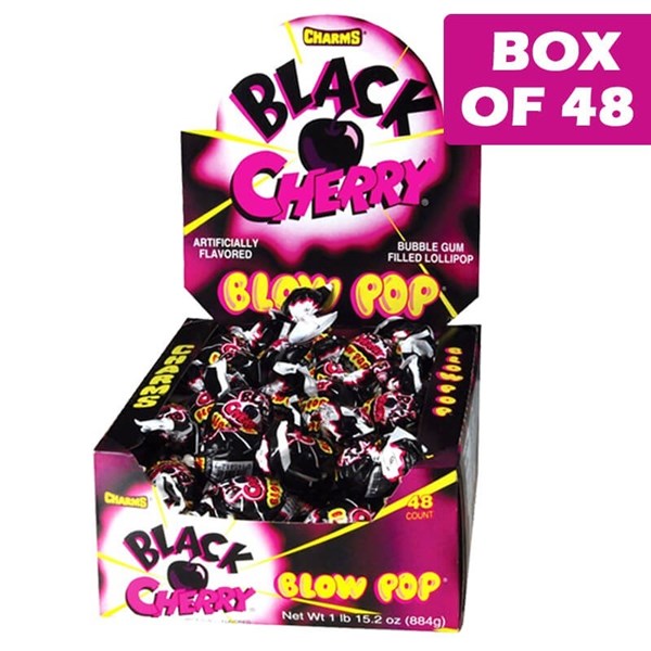 Charms Blow Pop Black Cherry Bubble Gum Filled Lollipop 48 Pack
