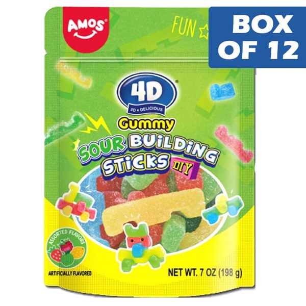 Amos 4D Gummies Sour Building Sticks Bag 1kg
