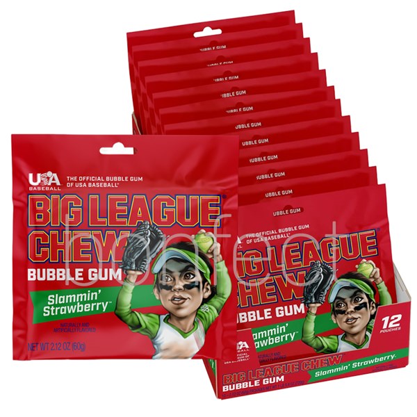 Big League Chew Strawberry Bubblegum Chewing Gum Pouch 60g * 12 Pack