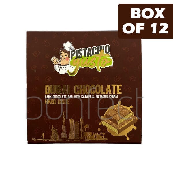 Gusta Pistachio Dubai Dark Chocolate With Kataifi & Pistachio Cream Bar 100g * 12 Pack