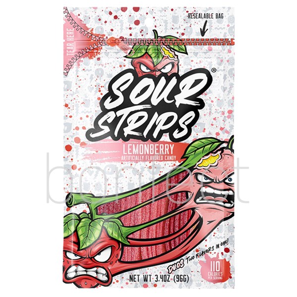 Sour Strips Candy Bag 96g * 12 Pack - Lemonberry