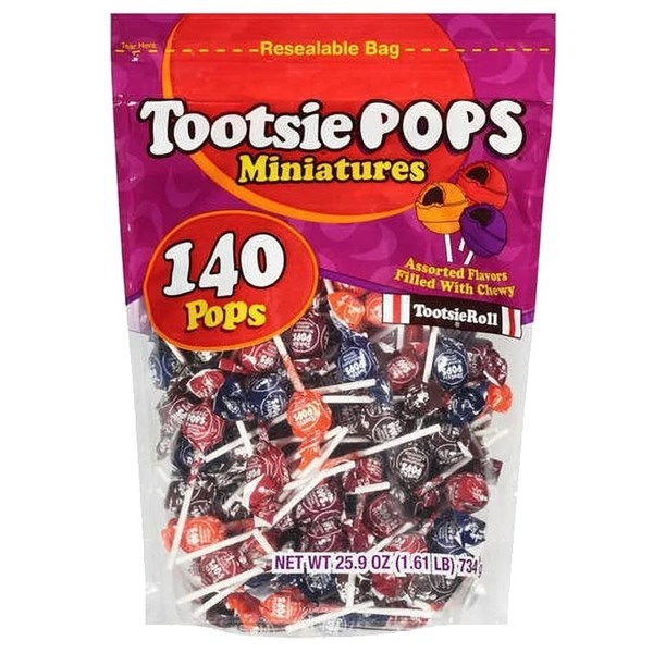 Tootsie Pops Miniatures Pops Assorted Flavors 140 Pieces